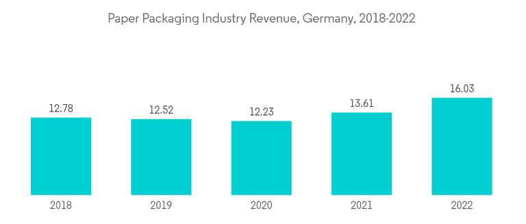 The paper packaging industry grew significantly in Germany in 2022 because of the increasing demand for non-fossil-based packaging for different end-user industries.