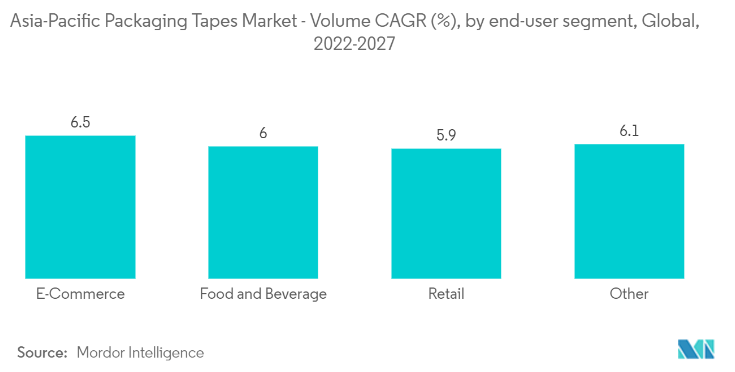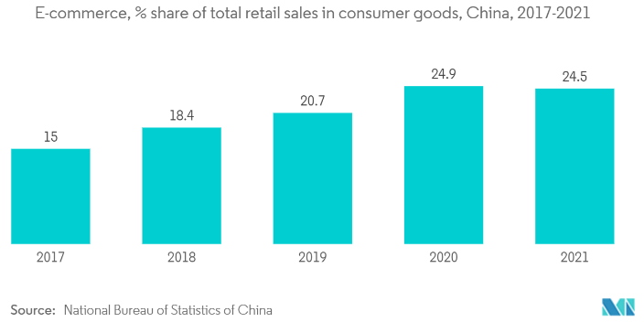 According to the National Bureau of Statistics of China, the country has the largest retail e-commerce market worldwide. About 24.5% of the total retail sales in China were made online in 2021, slightly lower than the 24.9% in the previous year. Furthermore, packaging tapes are utilized as a packaging good, which provides a growth opportunity for the market studied within the region.