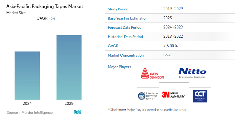 The Asia-Pacific packaging tapes market is projected to register a CAGR of over 6% during the forecast period.