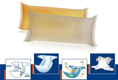Hot melt adhesives are commonly used in bookbinding, for the manufacture of packaging, for coatings, diapers, other sanitary products, and tapes.