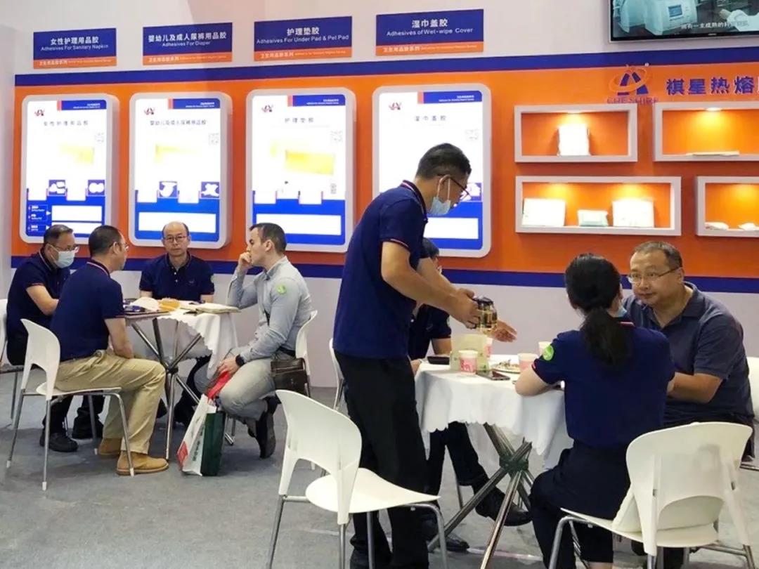 此次展会,祺星新材料公司总经理程晨先生和销售副总吴强先生携公司卫生用品胶行业技术部要员及销售团队,齐聚金陵,共赴这一年一度的行业之约。祺星新材料公司继续结合客户需求,提供多样化服务,在发挥创新研发基础上,为客户提供量身订制的胶粘产品解决方案!