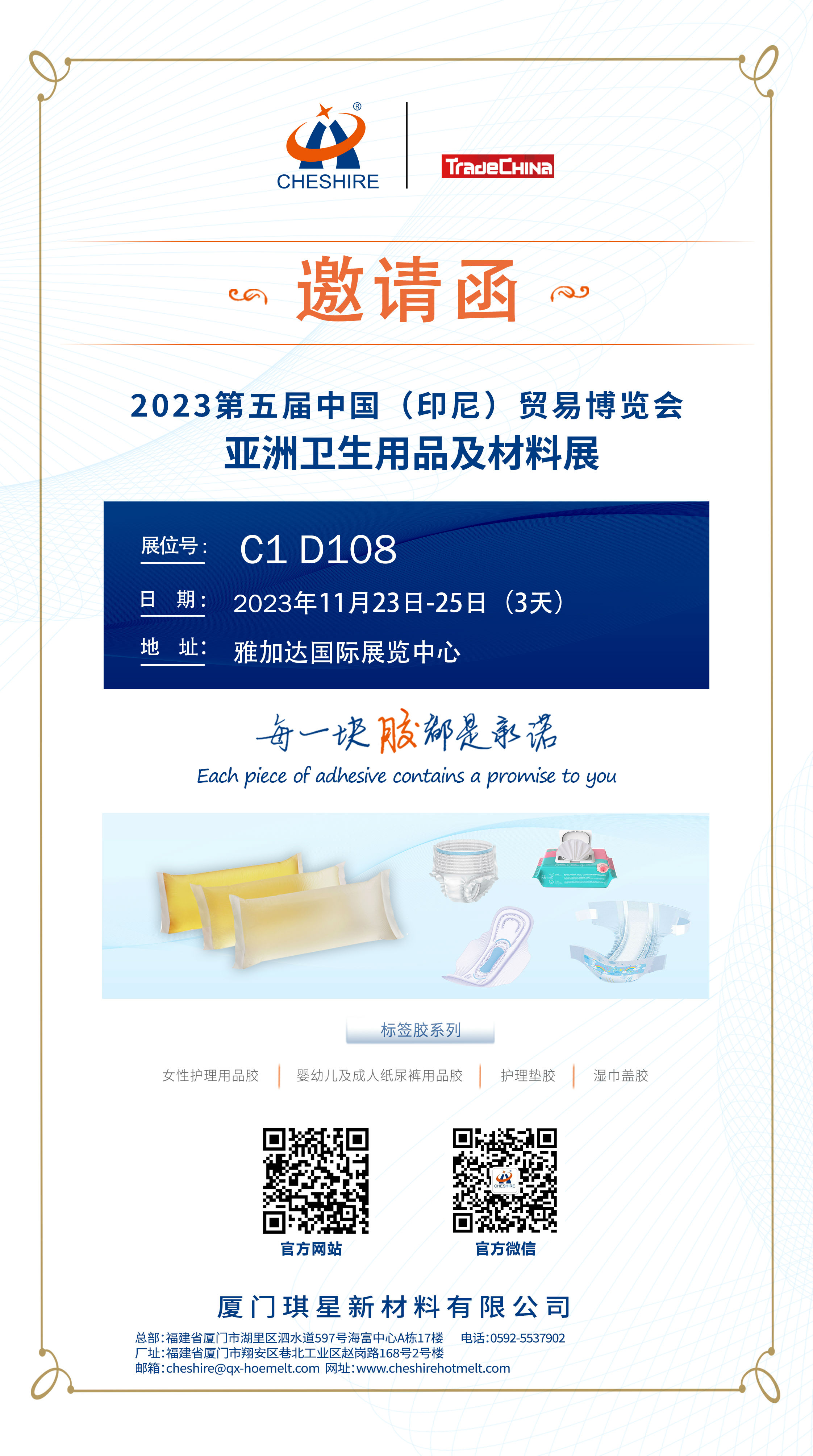 众望已久,蓄势而来,又一国际展览盛会即将启幕!11月23日-25日,亚洲(印尼)卫生用品及材料展将于印尼雅加达国际展览中心拉开序幕。届时我司将全面展示卫生用品行业全系列粘合剂产品及应用解决方案,诚挚邀请新老客户拨冗出席,观摩交流,共襄盛会。