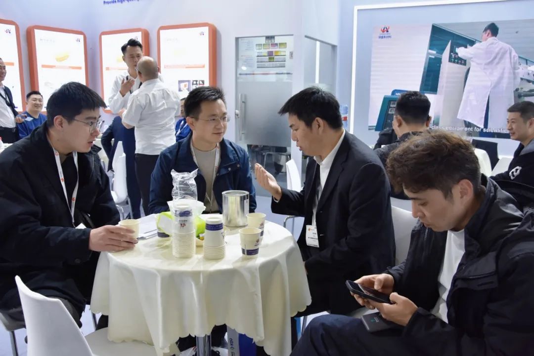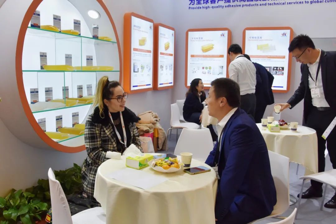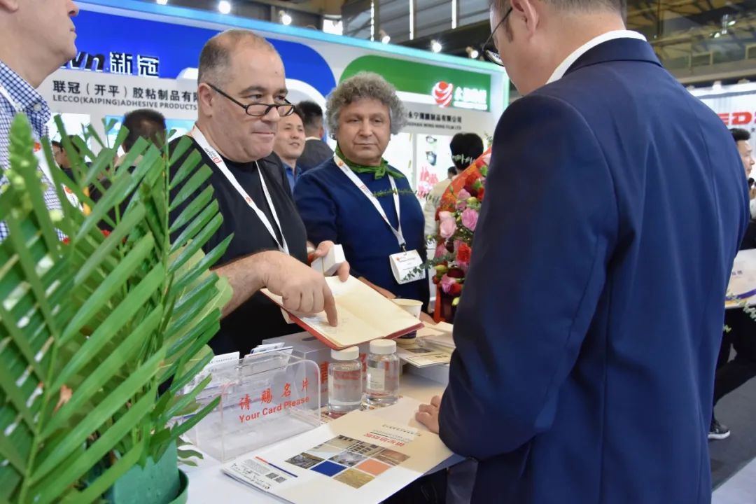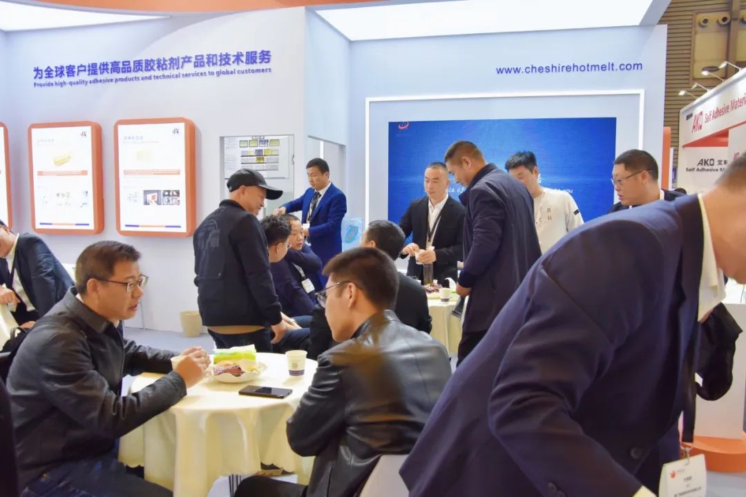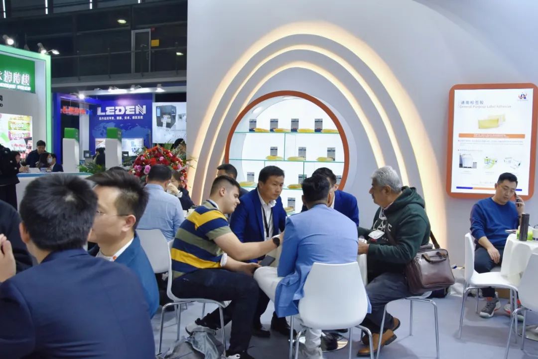 展会首日盛况空前,我司展台人声鼎沸、人气爆棚,观展者络绎不绝,咨询洽谈声此起彼伏,热闹非凡。作为行业挈领者,此次展会我司全面展示全系列标签粘合剂产品及应用解决方案,其中重磅新品惊艳亮相,颠覆传统认知,受到新老客户的高度关注,吸引了俄罗斯、巴西、阿根廷、土耳其、墨西哥、印度、哈萨克斯坦、泰国、新加坡、印度尼西亚、韩国、日本等众多国内外客户驻足观摩、交流合作,一同感受行业技术创新的新跨越。