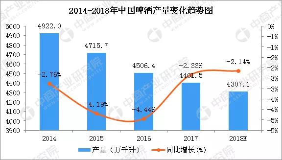 据中商产业研究院数据显示,近年来,全国啤酒产量呈逐年下滑的状态。据了解,我国啤酒行业量的下滑主因是低端产品,而中高端产品特别是高端产品增速最快,是带动行业量价提升的驱动力。
