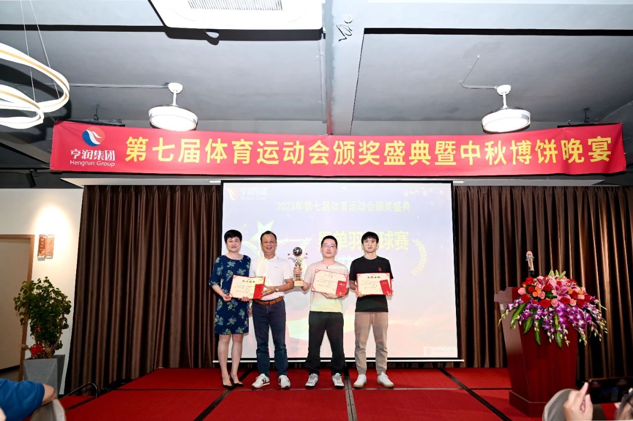 经过一天紧张激烈的角逐,在全体运动员、裁判员和工作人员的共同努力下,所有比赛项目圆满完成。赛事精彩绝伦,激情飞扬,无不彰显了我们亨润人的本色与风采。怀着美好的盼望,满载收获的喜悦,在中秋佳节来临之际,厦门亨润集团2023年度运动会颁奖盛典暨中秋博饼晚宴在欣良友酒店隆重举办。在这花好月圆的美好时刻,全体亨润同仁欢聚一堂,畅叙深厚情谊,共度欢乐时光。本届运动会我司运动健儿们斩获佳绩,获奖团队和个人脸上都洋溢着灿烂的笑容,与大家共享荣耀时刻。这份荣誉,既是对今日拼搏的肯定,更是对未来工作的鞭策,激励着我们不断奋发向前,以更强健的体魄、更昂扬的姿态和更积极的作为在工作岗位上开拓进取,为集团高质量跨越式发展注入强劲动力!在热烈的掌声中,集团董事长黄贞雄先生登台致辞。黄董事长首先向在本届运动会中取得优异成绩的运动员表示热烈的祝贺,向精心筹备本届运动会的部门及有关同仁致以亲切的问候,向默默支持公司的员工家属表以衷心的感谢!