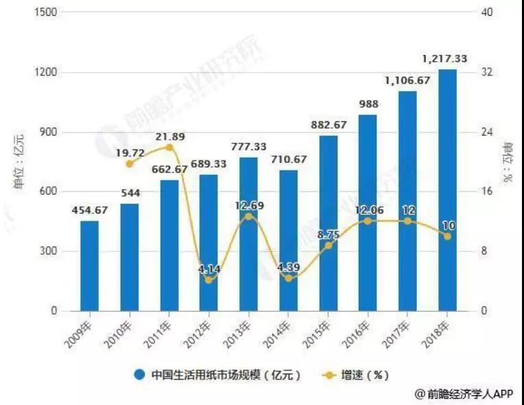 2009-2018年中国生活用纸市场规模统计及增长情况