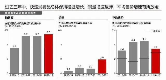 报告还发现,过去三年,快速消费品总体保持稳健增长,销量增速反弹,但是平均售价增速有所放缓。“从2019年就看到了中国消费者的两极分化,高端和低端相对来说表现更好。