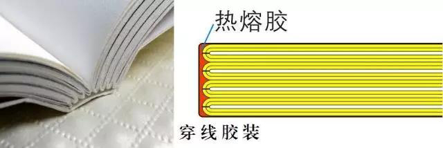 穿线胶装类似是将“锁线订”和“胶装”的结合,它是先将书刊内页配贴成册后,经索线订的方式固定书背,再用热熔胶粘剂将书贴粘贴上封面。是平装书中最佳的装订方式。